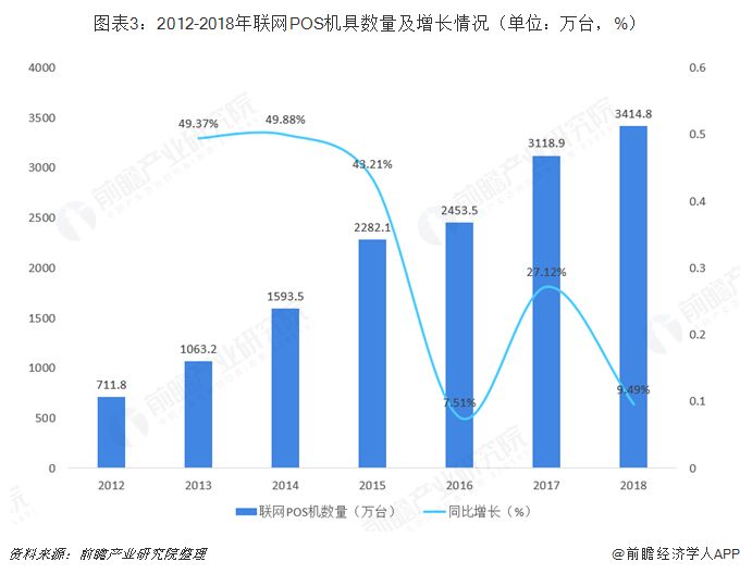受理市場環(huán)境不斷完善。截至2018年末,我國聯(lián)網(wǎng)POS機具共有3414.82萬臺,較上年增長295.96萬臺,全國每萬人對應(yīng)的POS機具數(shù)量245.66臺,同比增長8.91%,全國聯(lián)網(wǎng)POS機數(shù)和聯(lián)網(wǎng)商戶數(shù)的持續(xù)增長為智能POS收單發(fā)展提供了廣闊空間,智能POS對于第三方支付收單市場具有重要的業(yè)務(wù)升級作用。